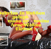 Da hab ich den Sklaven erstmal mit Ketten ans Bett gefesselt, damit er mir wehrlos ausgeliefert ist! Er kann machen was er will, befreien kann nur ich ihn und so nutze ich die Gunst der Stunde um mir das zu nehmen was ich will! Geilen Sex! So wird auch meine geile Arschfotze befriedigt, denn ich stecke seinen Schwanz in meinen Arsch und reite ihn! Damit ich auch ja einen geilen Arschfick erlebe, blase ich den schlappen Schwanz nochmal ordentlich, denn ich brauche einen richtig steifen Schwanz in meiner Arschfotze! Supergeil!