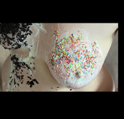 Ich tunke meine Brüste in Sahne und verziere sie mit bunten und Schokostreusseln. Anschließend wird mit kaltem Wasser ausgiebig abgeduscht