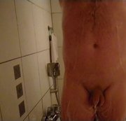Ich seife mich unter der Dusche ein und natürlich dürfen die Eier nicht zu kurz kommen