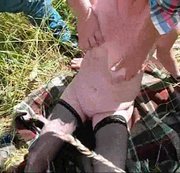 Outdoor geilen wir 4 Kerle uns an Beas geilen Body auf