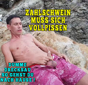 Ich bin im Urlaub und mein Zahlschwein ist mit dabei. Warum auch nicht, diese Sklavensau ist perfekt zum ausbeuten und demütigen. Wir waren etwas am Strand unterwegs und sein gejammer ging mir richtig auf die Nerven. Nach einiger Zeit wollte ich nur noch nach Hause und die Sau jammert weiter. Stop ich muss mal pissen. Fuck you. Wenn du pissen willst auf meine Art. Piss dich selber voll und danach wirst du so nach Hause laufen und auf dem Weg noch ein paar Erledigungen für mich machen. Mal schauen was die anderen Leute von dir denken und dich anschauen, wenn du vollgepisst vor ihnen stehst. #Sklave #Domina #Mistress #Hardcore #BDSM #SM #pee #pissen #natursekt